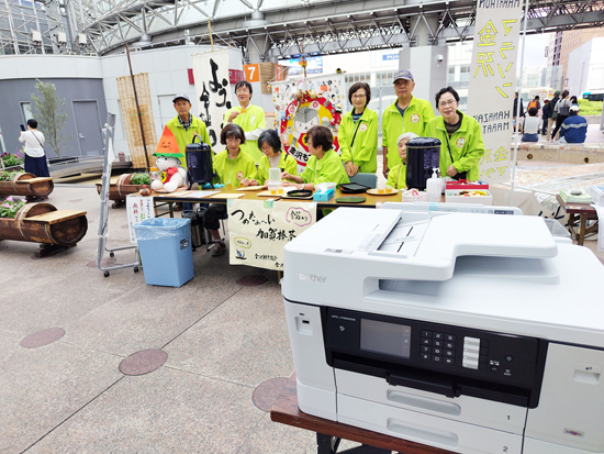 金沢もてなし隊の活動は今年20周年となり、みなさまに喜んでいただいています。この度のブラザープリンターは、会員46名に毎月の活動予定連絡や、もてなし茶屋のあそび広場の材料のコピーなど有効に使わせていただきます。ありがとうございました。