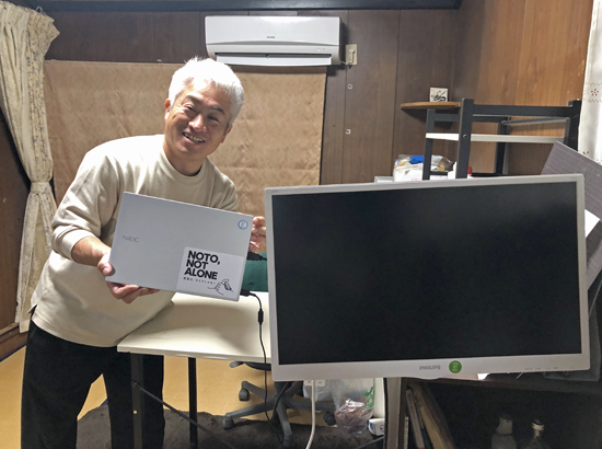 この度は、PCとモニターを寄贈いただき、誠にありがとうございます!さっそく、能登半島地震の支援拠点にて活用させていただいております。おかげさまで事務所での作業効率が格段に上がり、今後は防災・伝承活動の促進のために大切に活用させていただきます!